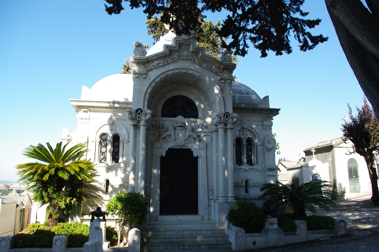 Hay tumbas abandonadas, que hablan de olvido y desaparición. Y otras con sus cortinas, o sus azulejos pintados, tan portugueses, como invitando a la visita.